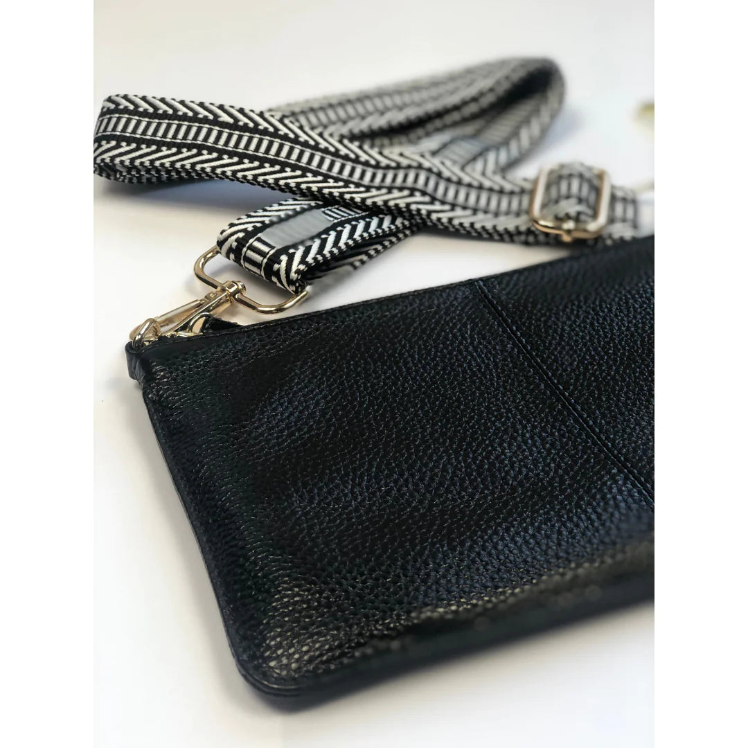 The perfect size crossbody to carry your essentials in style AND the most practical piece in your closet. Soft genuine leather and 3 interchangeable straps: printed canvas crossbody (adjustable), leather crossbody (adjustable) and leather wristlet.